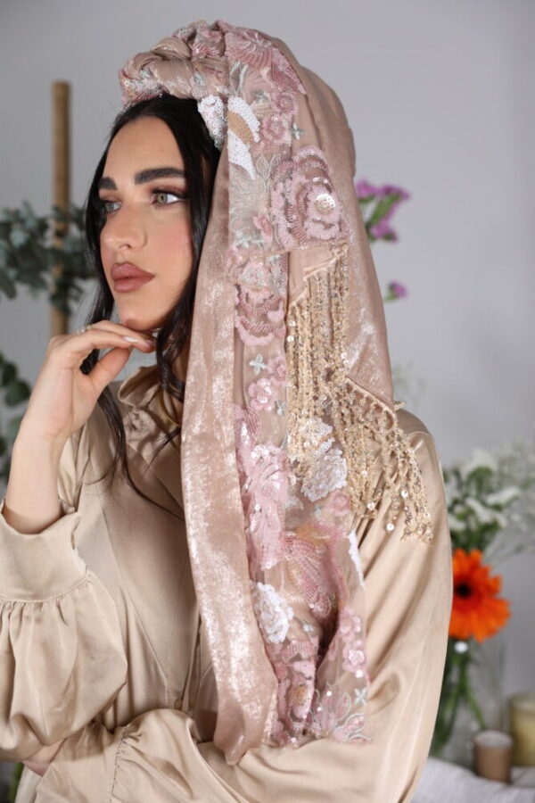 מורכבת משני בדים האחד בד פייט בצבעים זהב וורוד עתיק